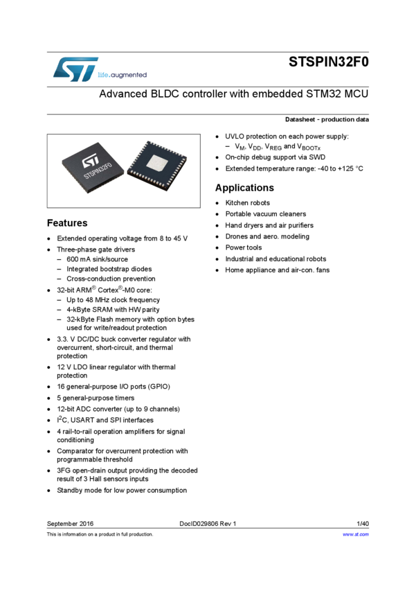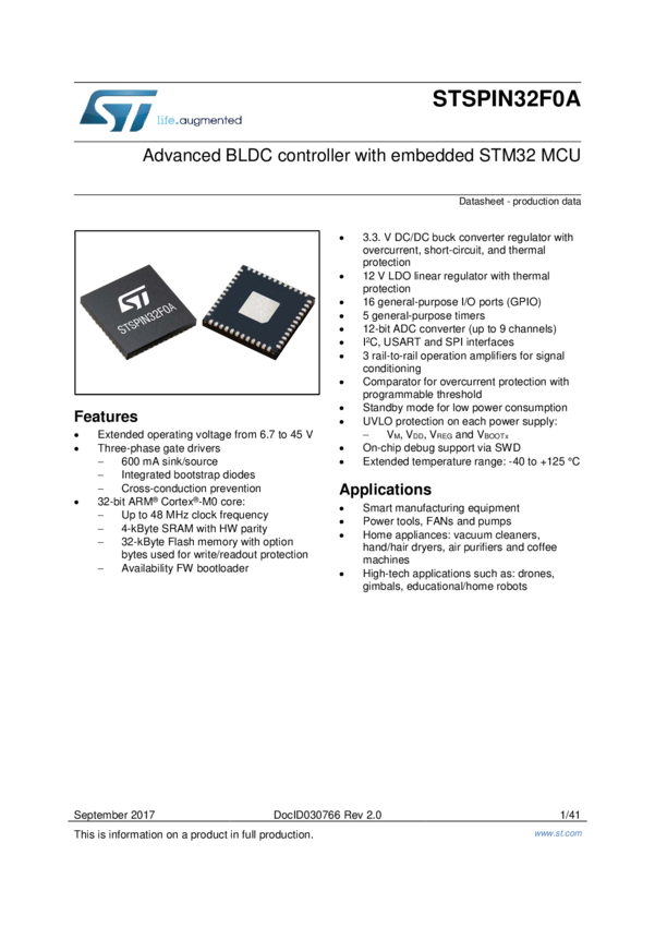 STSPIN32F0 Advanced BLDC controller with embedded STM32 MCU evaluation board