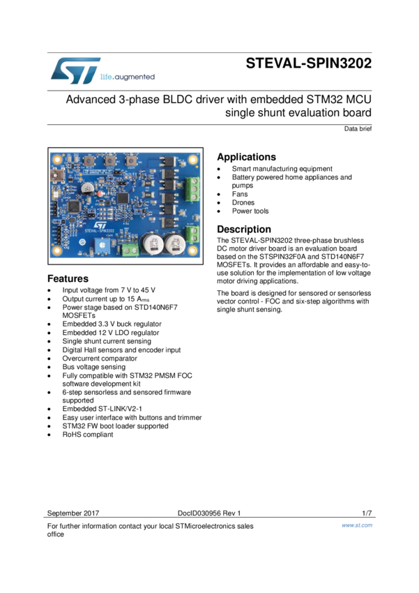 BLDC/PMSM driver demonstration board based on STM32 and the SLLIMM nano™