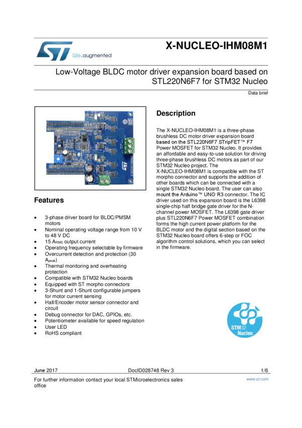 Low-Voltage BLDC motor driver expansion board based on STL220N6F7 for STM32 Nucleo