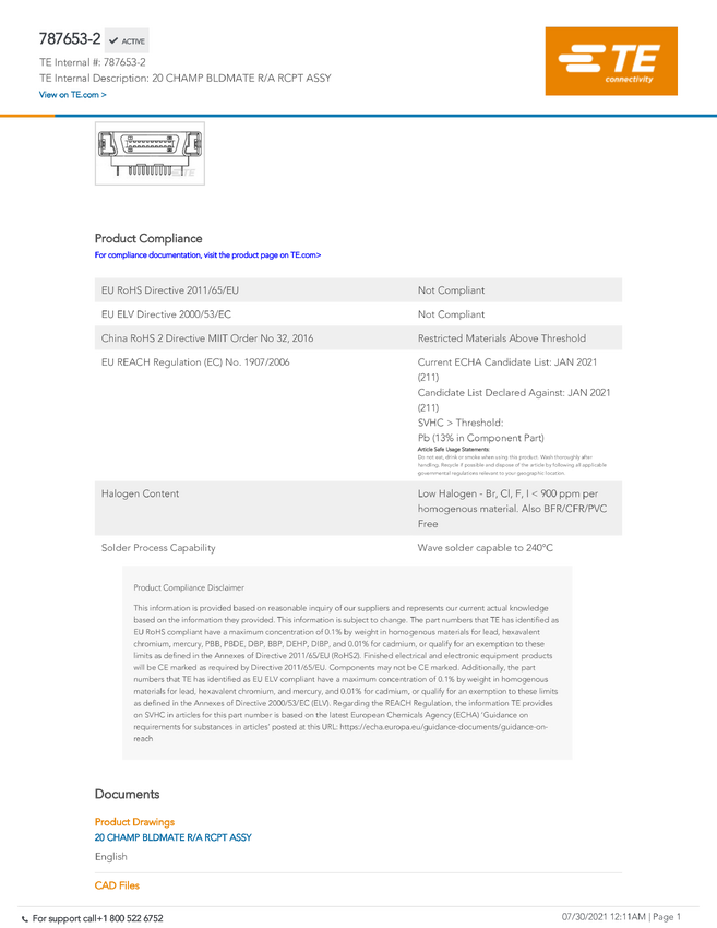 TE Connectivity 787653-2 TE AMP CHAMP .050 Blindmate, 1 szt.