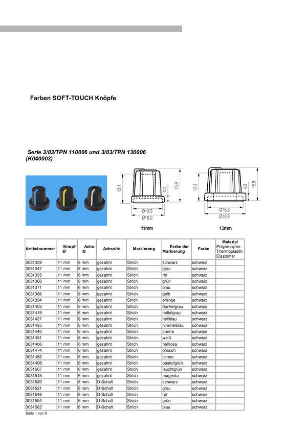 PB Fastener 3/03/TPN 130006 Blk/Gy 3/03/TPN 130006 Pokrętło ze wskaźnikiem czarny, szary (Ø x W) 19 mm x 16 mm 1 szt.