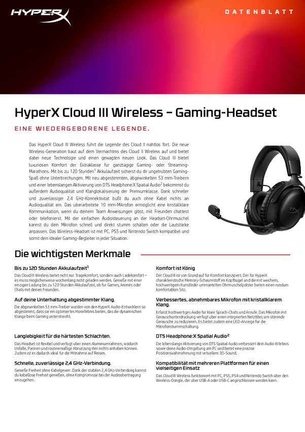 HyperX Cloud III WL BLK GAM HS Słuchawki wokółuszne bezprzewodowa stereo czarny gaming