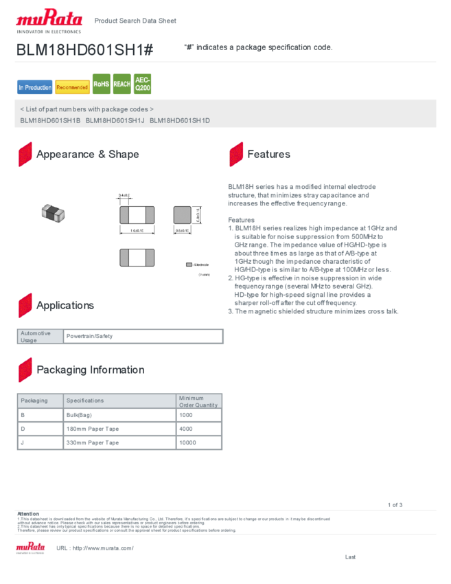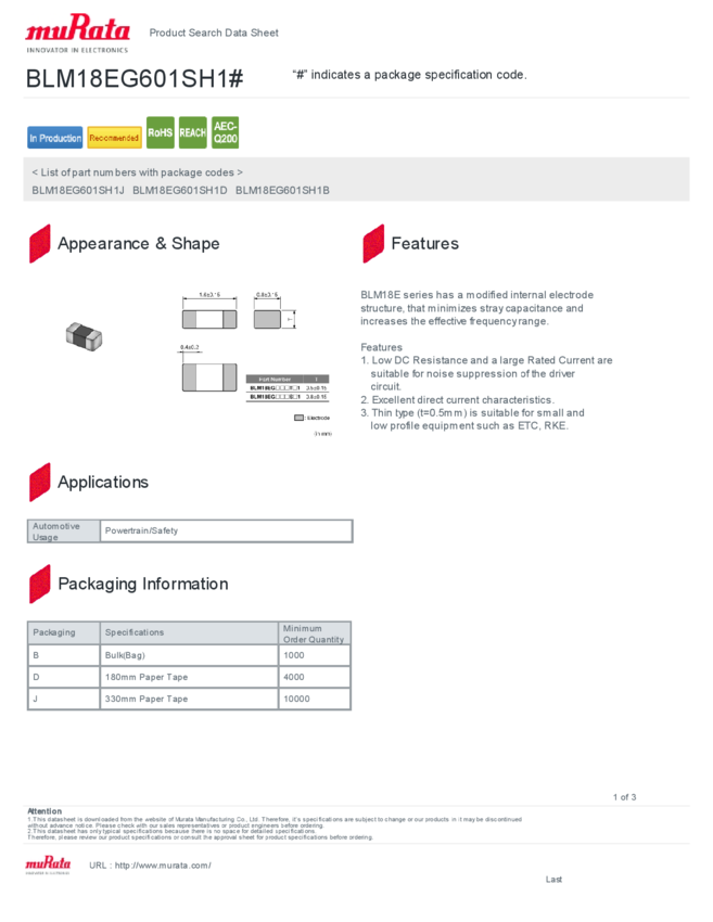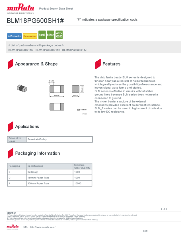 Ind Chip Bead ±25% Ferrite 1A 0603 Paper T/R