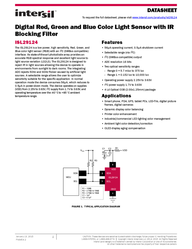 Digital Red, Green and Blue Color Light Sensor with IR Blocking Filter