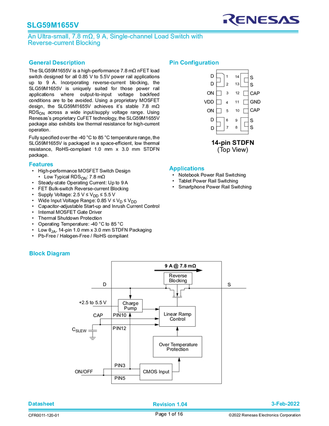GreenFET Single N-Channel Reverse Blocking Load Switch