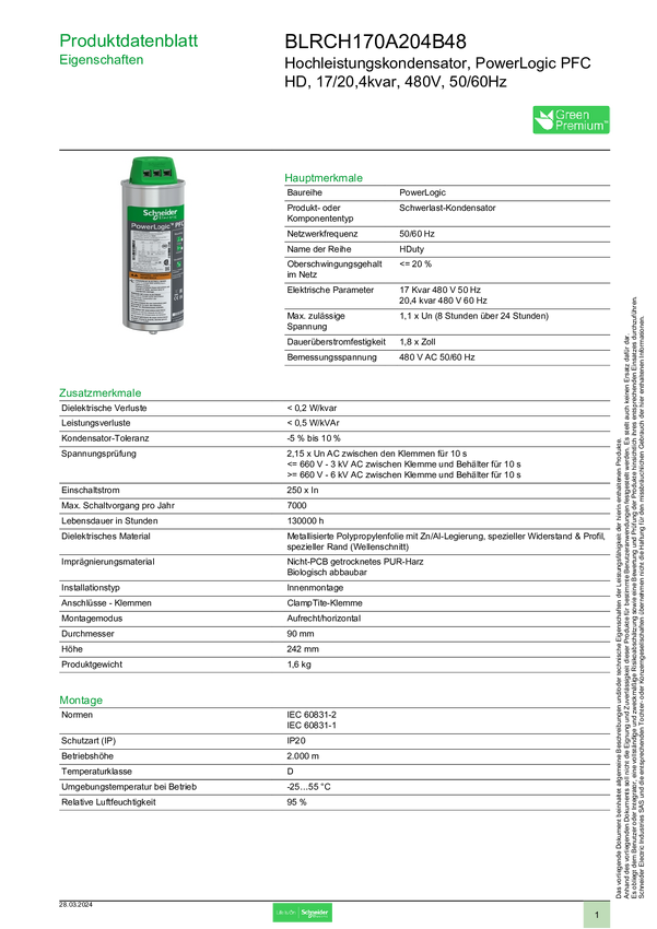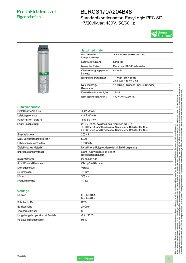 Schneider Electric BLRCH170A204B48 Kondensator foliowy 1 szt.