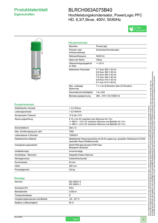 Schneider Electric BLRCH063A075B40 Kondensator foliowy 3 szt.