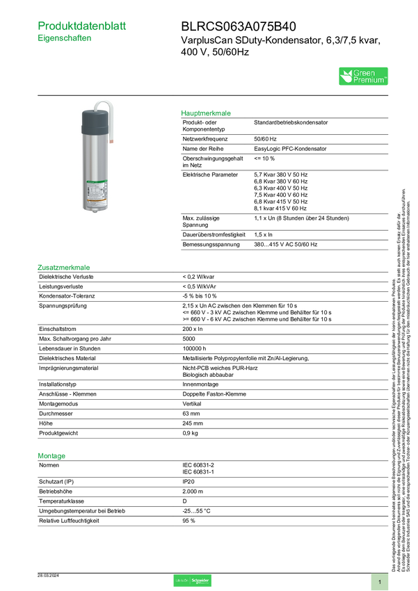 Schneider Electric BLRCS063A075B40 Kondensator foliowy 3 szt.