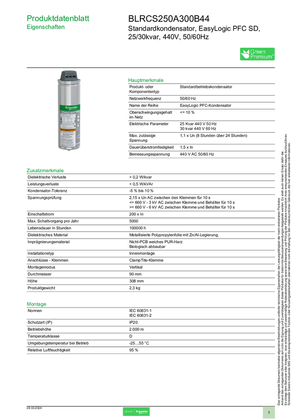 Schneider Electric BLRCH250A300B44 Kondensator foliowy 1 szt.