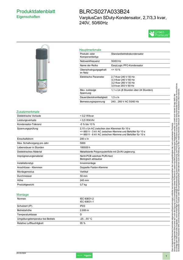 Schneider Electric BLRCS027A033B24 Kondensator foliowy 9 szt.