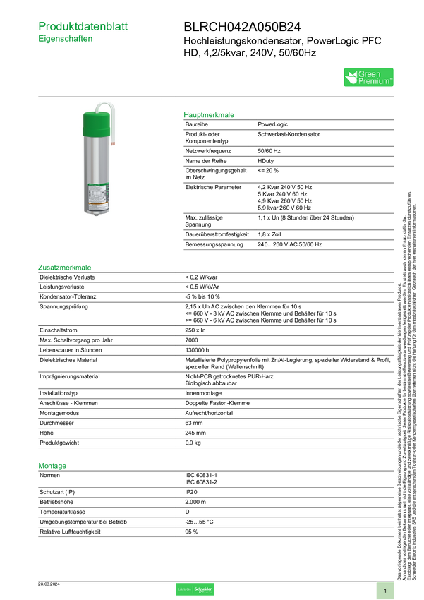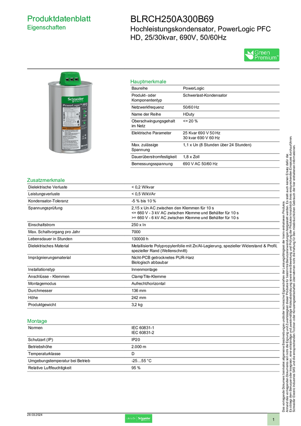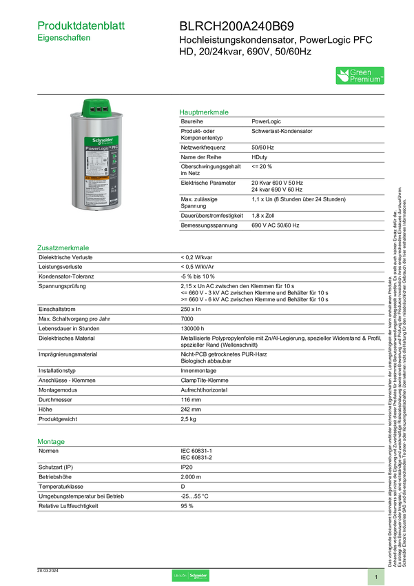Schneider Electric BLRCH200A240B69 Kondensator foliowy 1 szt.