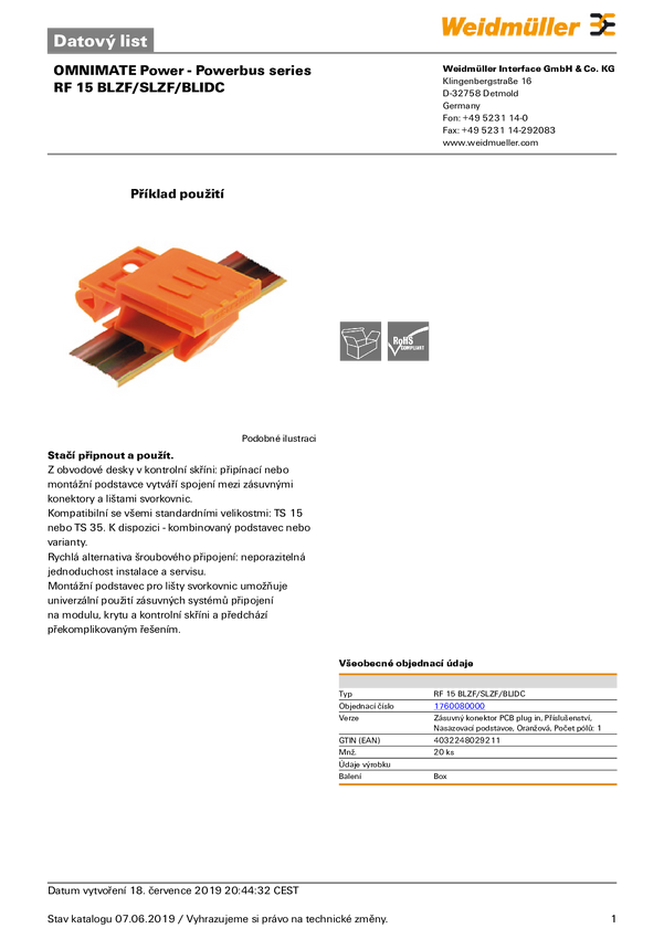 Stopka zatrzaskowa RF 15 BLZF/SLZF/BLIDC 1760080000 Weidmüller Zawartość: 20 szt.