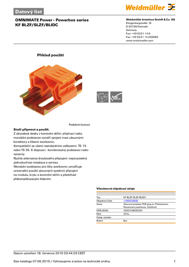 Stopka zatrzaskowa KF BLZF/SLZF/BLIDC 1760070000 Weidmüller Zawartość: 20 szt.