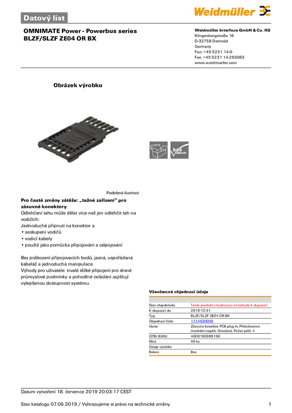 Zabezpieczenie przed naprężeniami BLZF/SLZF ZE 4 OR 1714930000 Weidmüller Zawartość: 50 szt.