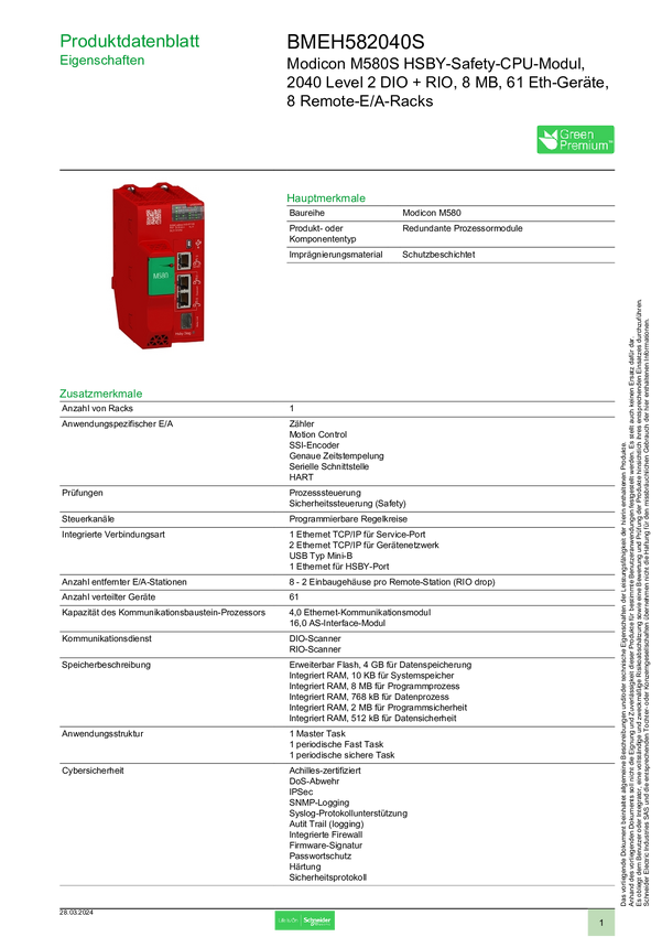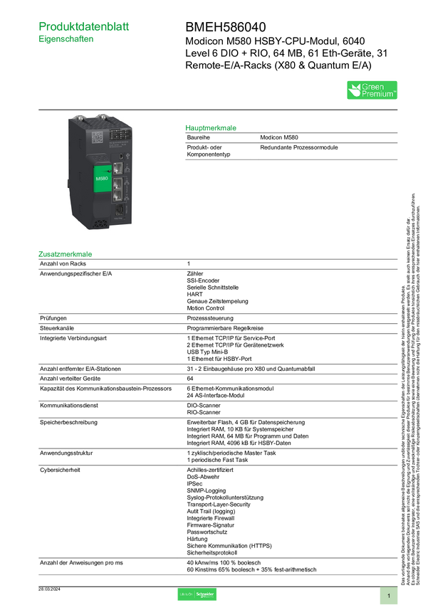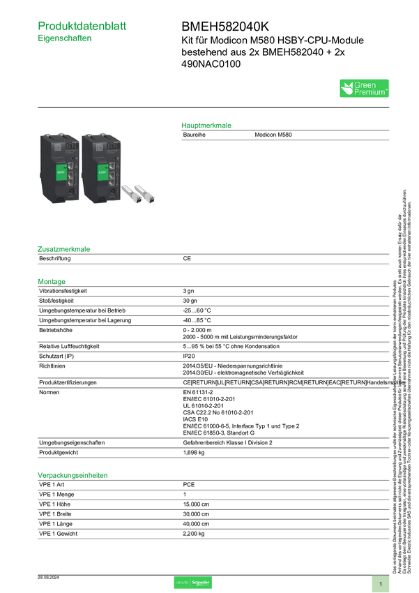 Moduł rozszerzeń Schneider Electric BMEH582040 BMEH582040