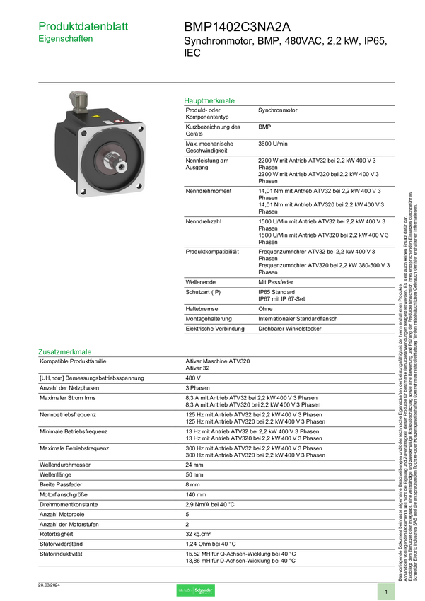 Silnik serwo Schneider Electric BMP1401C3NA2A
