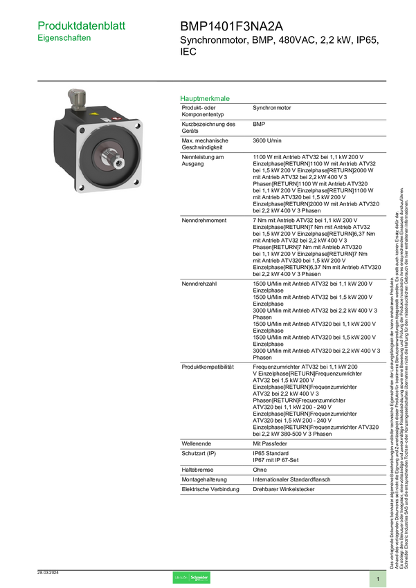 Silnik serwo Schneider Electric BMP1401F3NA2A