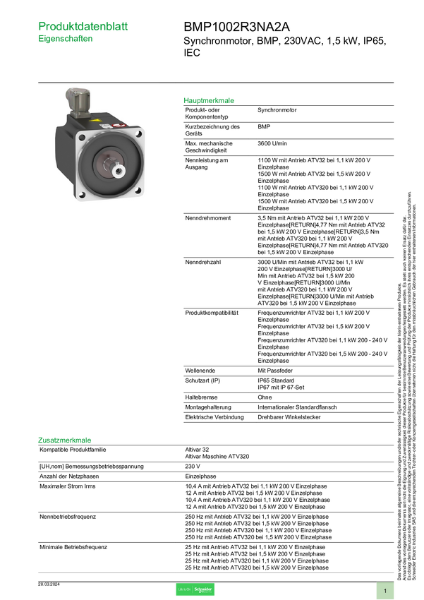 Silnik krokowy Schneider Electric BMP1001F3NA2A