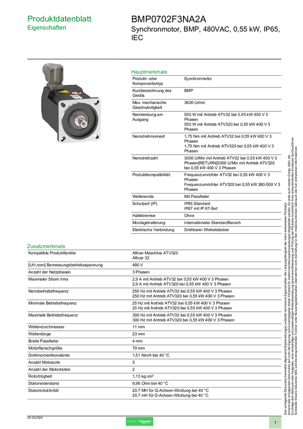 Silnik krokowy Schneider Electric BMP0702F3NA2A