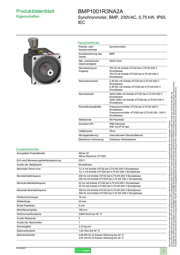 Silnik krokowy Schneider Electric BMP1001R3NA2A