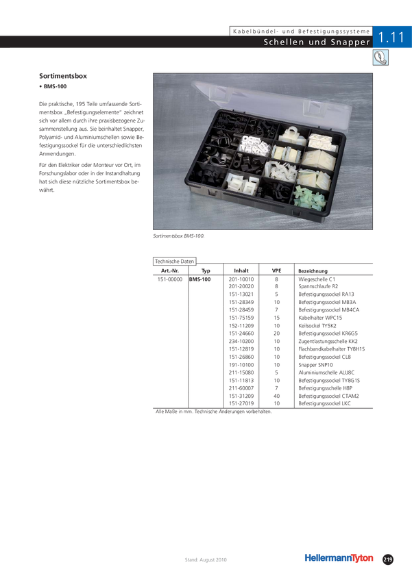 HellermannTyton BMS-100 Zestaw uchwytów kablowych 151-00000 195 części