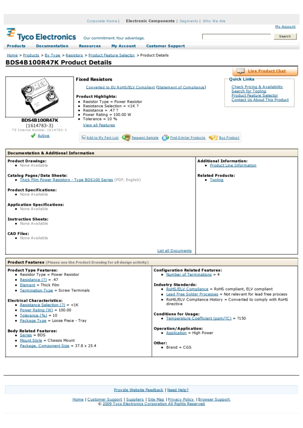 Res Thick Film 0.47 Ohm 10% 100W ±150ppm/°C Screw Terminal Bolt-On Tray