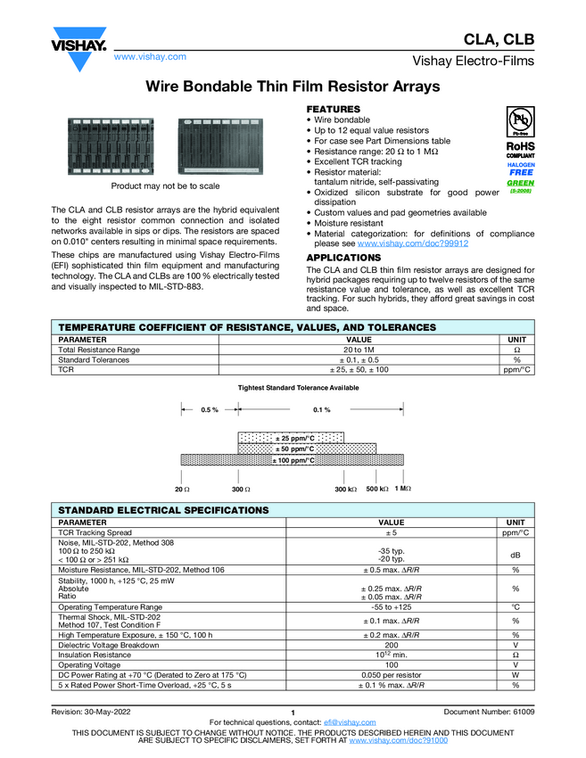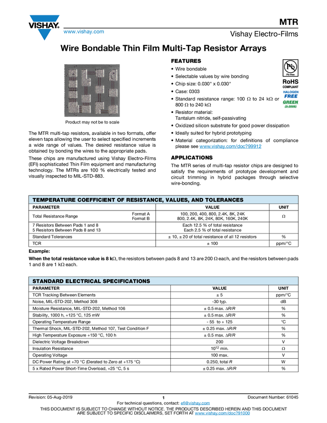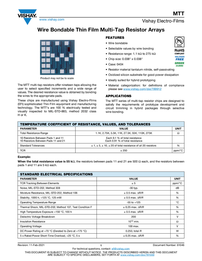Wire Bondable Thin Film Multi-Tap Resistor Arrays