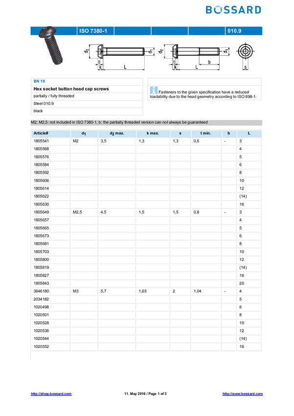 Śruba; M3x14; Łeb: kulisty; imbus; stal; czernione; HEX 2m; 1020544; BOSSARD; opakowanie/100szt