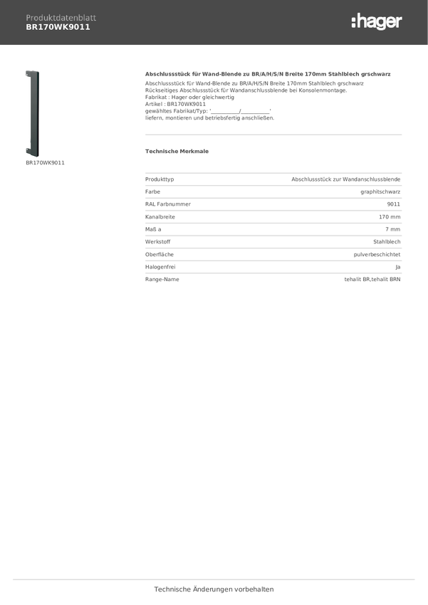 BR170WK9011 Akcesorium do listw Tehalit Element końcowy grafitowy czarny 1 szt.