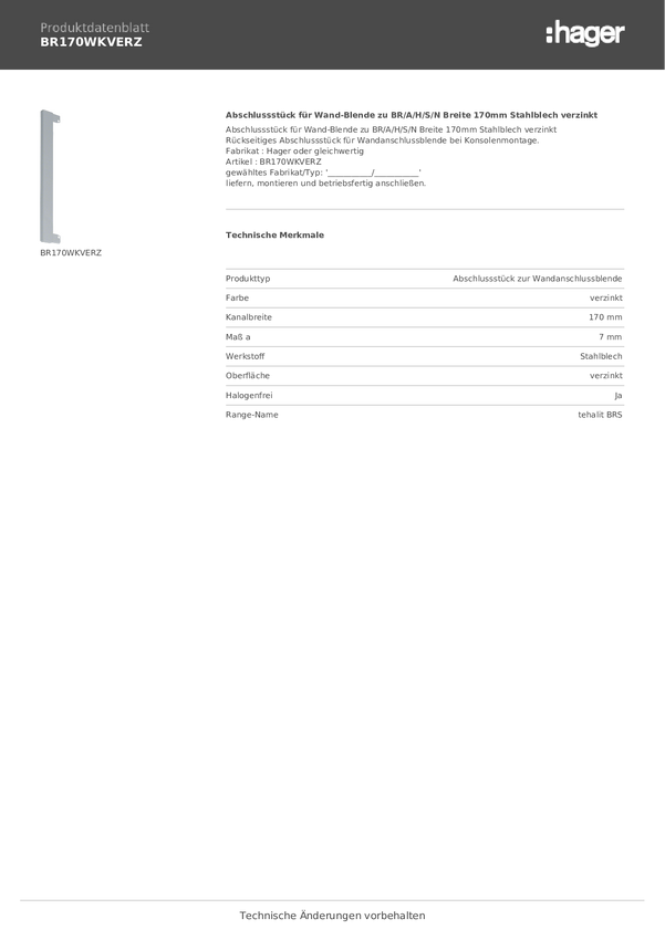 BR170WKVERZ Akcesorium do listw Tehalit Element końcowy ocynkowany 1 szt.