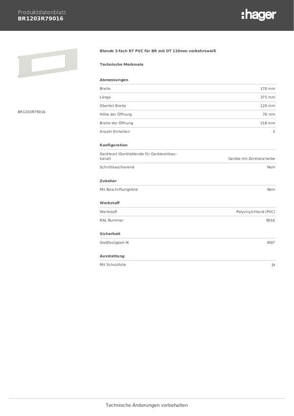 Apertura Hager Tehalit BR1203R79016, 1 szt.