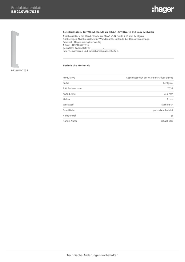 BR210WK7035 Akcesorium do listw Tehalit Element końcowy szary 1 szt.