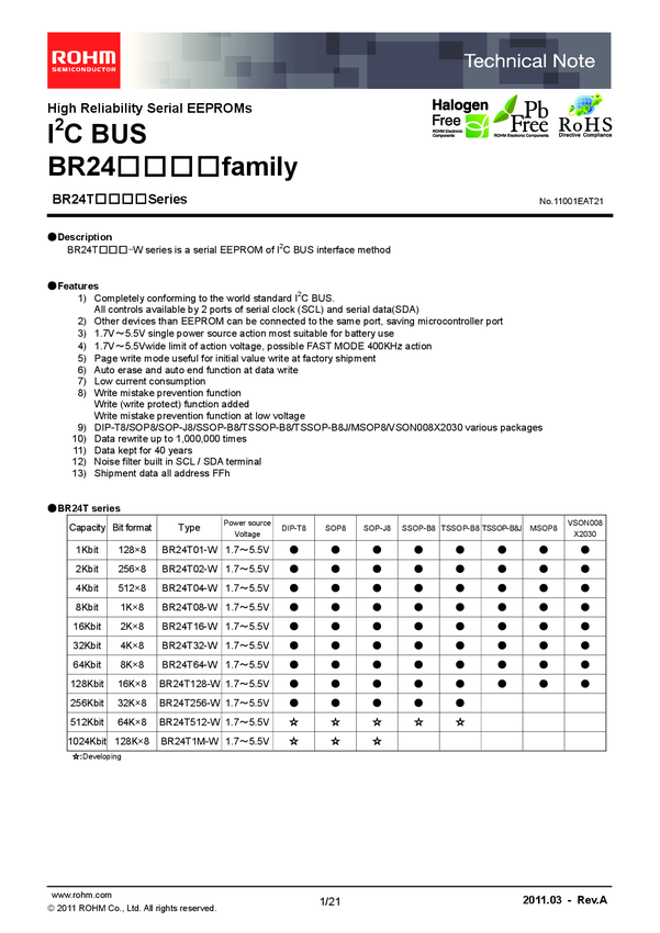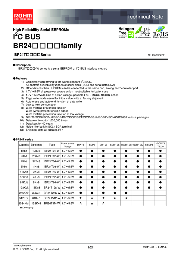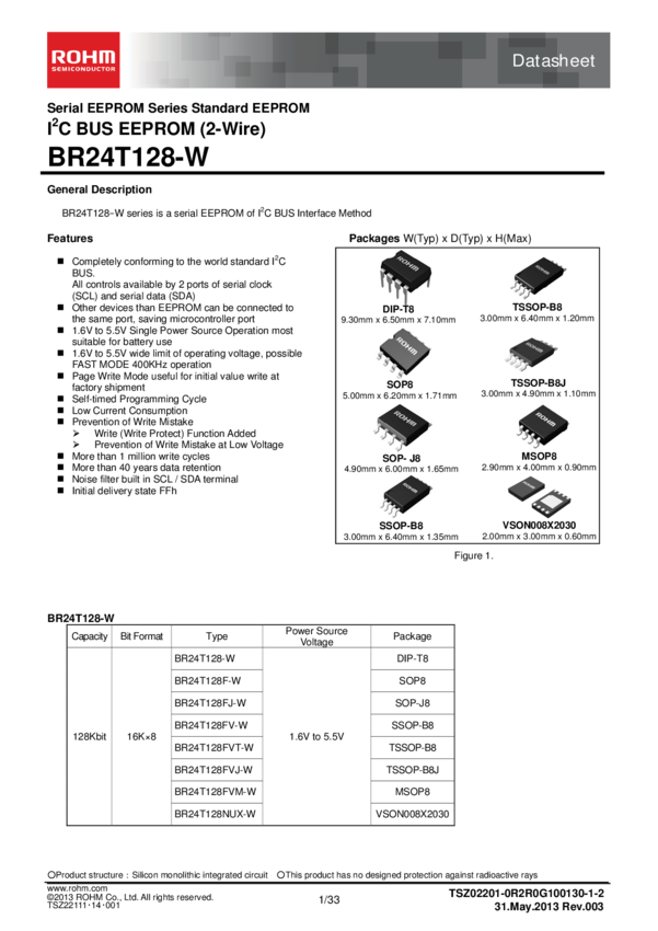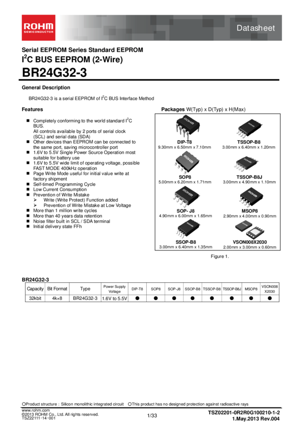 ROHM Semiconductor serial EEPROM with SPI interface in 8-pin package