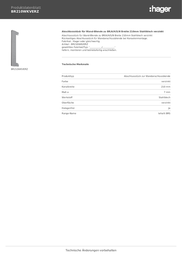 BR210WKVERZ Akcesorium do listw Tehalit Element końcowy ocynkowany 1 szt.