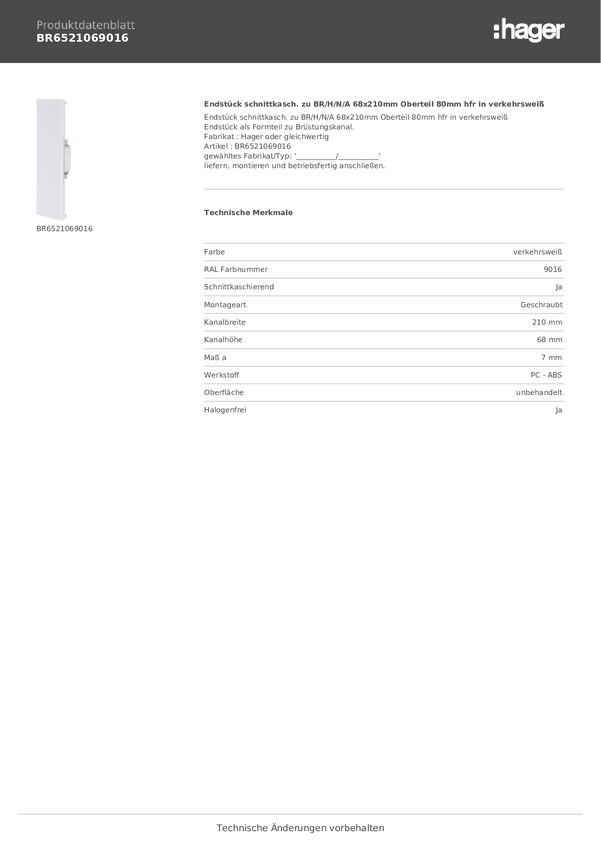 Laminacja cięta Hager BR652107VERZ 1 szt.
