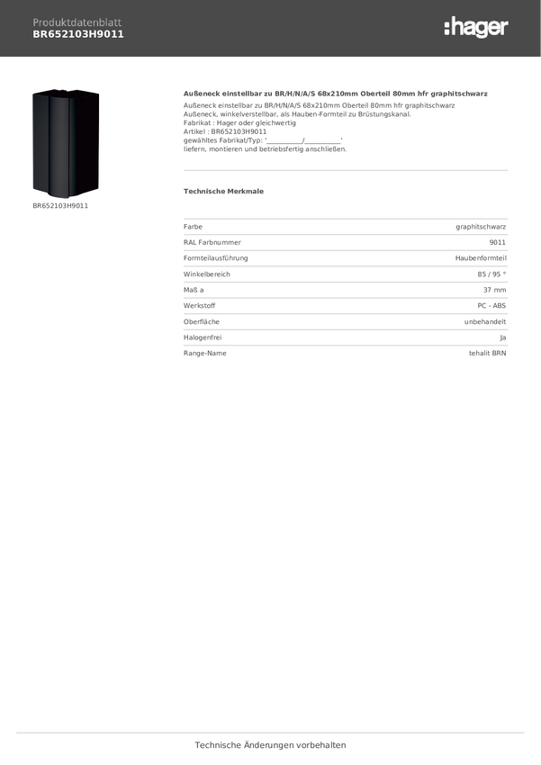 BR65210W9011 Akcesorium do listw Tehalit Ścienny panel połączeniowy grafitowy czarny 1 szt.