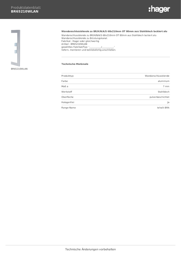 BR65210WLAN Akcesorium do listw Tehalit Ścienny panel połączeniowy aluminiowy 1 szt.