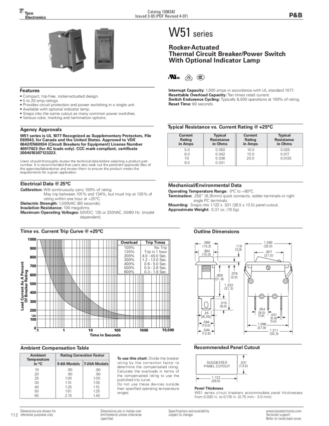 Circuit Breaker Thermal 1Pole 7A 125VAC