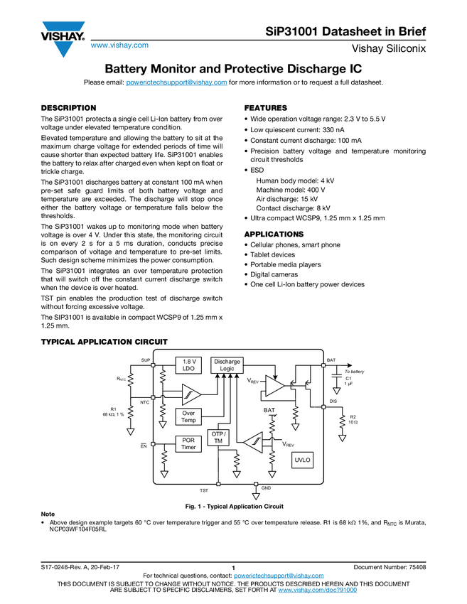 SiP31001 Datasheet in Brief