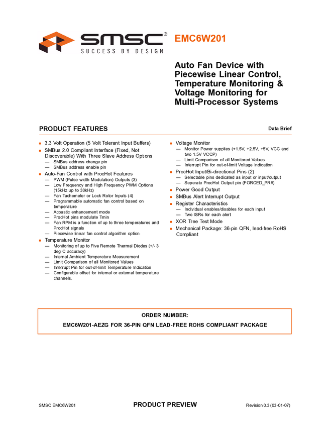 EMC6W201 Auto Fan Device with Piecewise Linear Control, Temperature Monitoring - EMC6W201 Auto Fan Device with Piecewise Linear Control, Temperature Monitoring and Voltage Monitoring for Multi-Processor System Data Brief