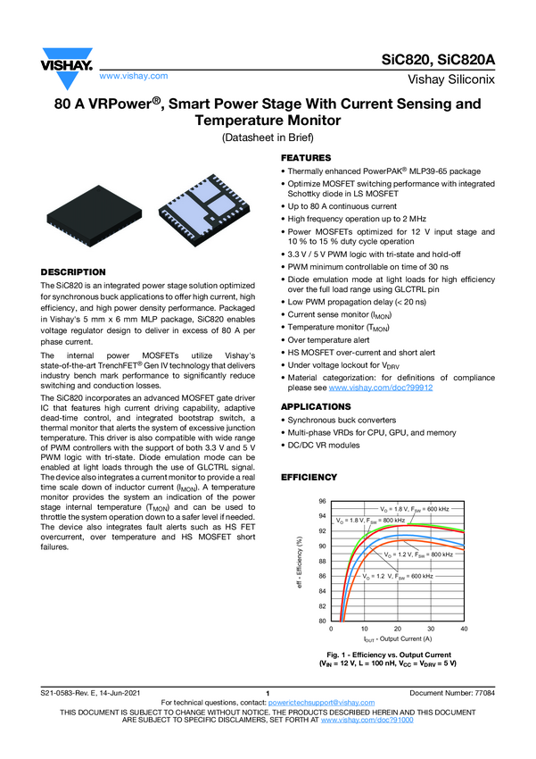 80 A VRPower®, Smart Power Stage With Current Sensing and Temperature Monitor (Datasheet in Brief)