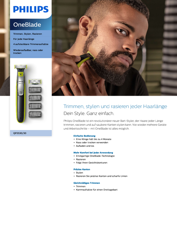 Philips Bodycare QP2530/30 Trymer do włosów na ciele, Brzytwa, Maszynka do strzyżenia brody możliwość mycia szary, limon