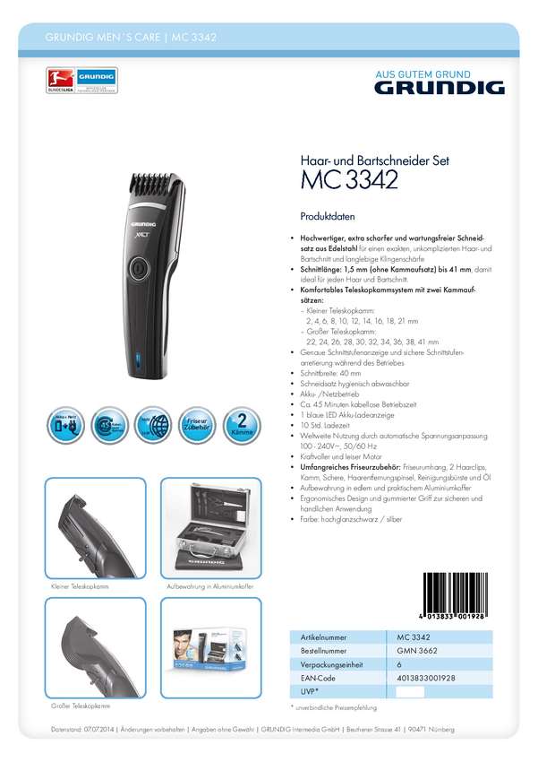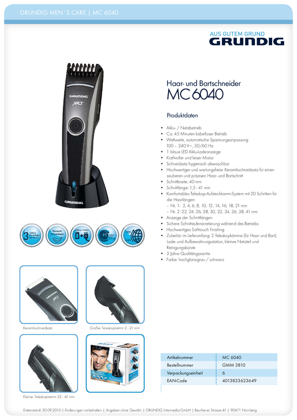 Grundig MGK 6841 Maszynka do strzyżenia brody, Maszynka do strzyżenia włosów, Brzytwa, Trymer do włosów w nosie możliwoś