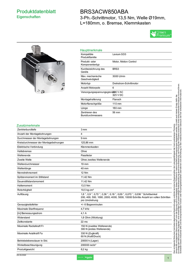 Silnik krokowy Schneider Electric BRS3ACW850FCA