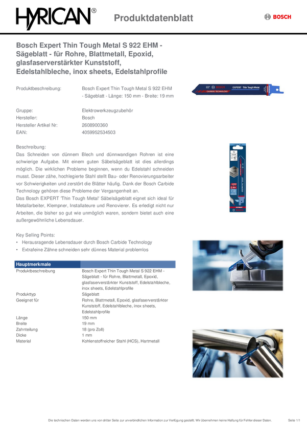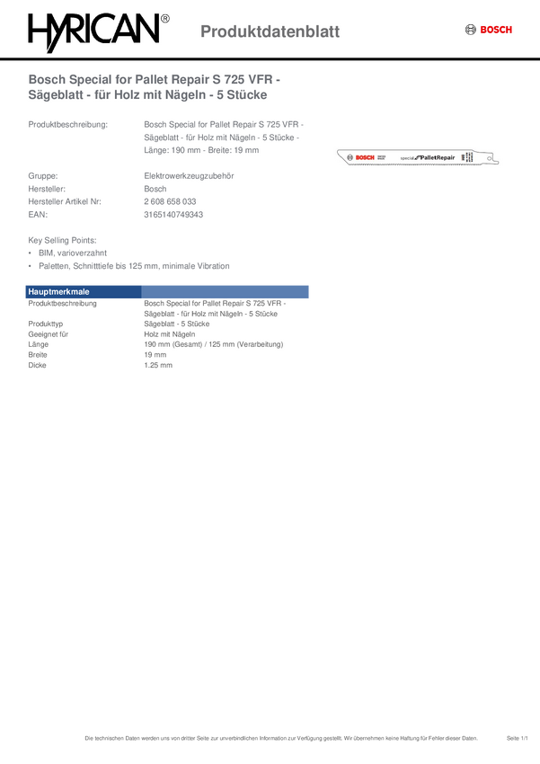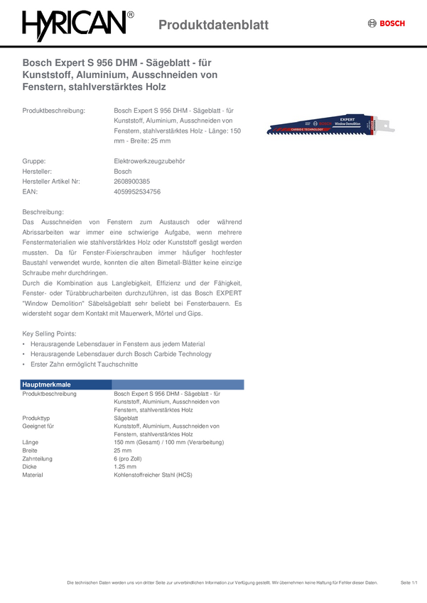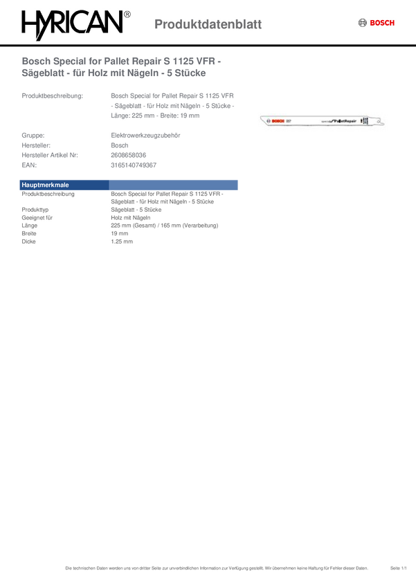 Brzeszczot do piły szablastej Bosch Accessories 2608658036 1 szt.