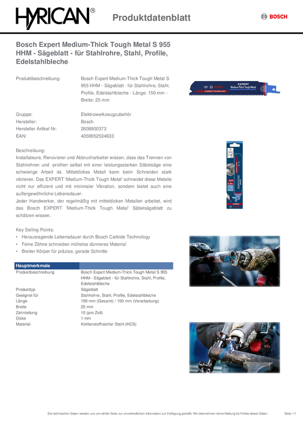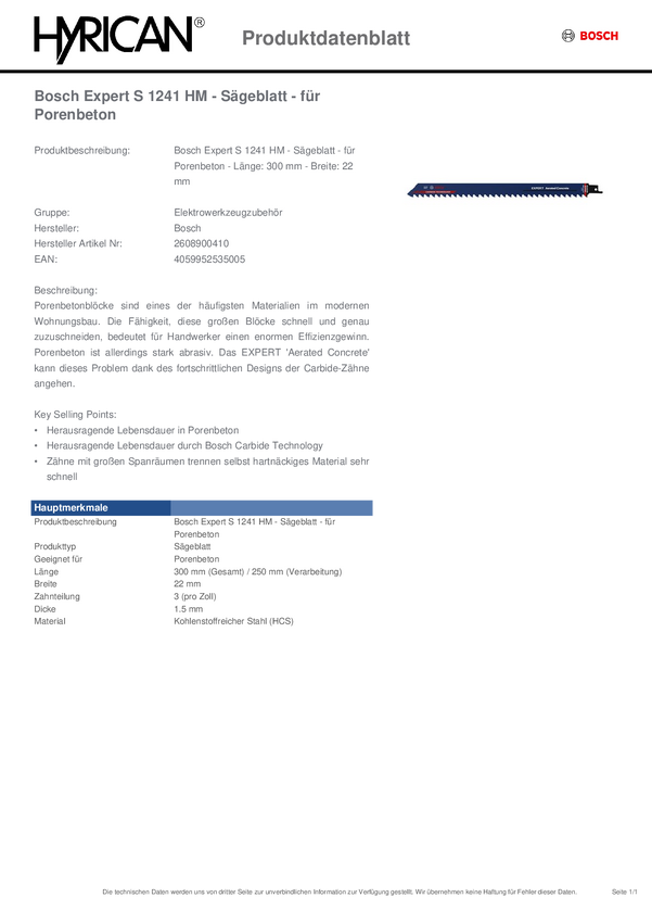 Brzeszczot do piły szablastej Bosch Accessories 2608900410 1 szt.