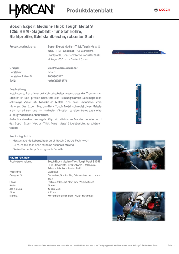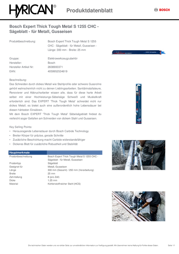 Brzeszczot do piły szablastej Bosch Accessories 2608900371 1 szt.