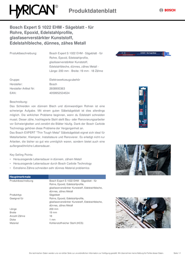 Brzeszczot do piły szablastej Bosch Accessories 2608900363 1 szt.