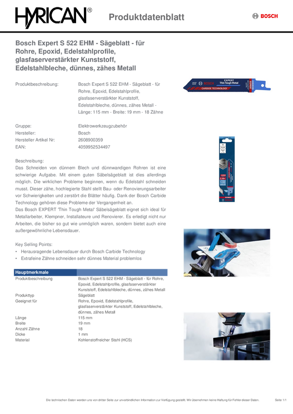 Brzeszczot do piły szablastej Bosch Accessories 2608900359 1 szt.