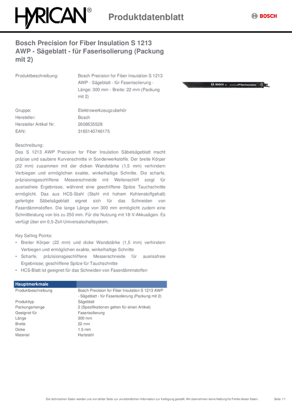 Brzeszczot do piły szablastej Bosch Accessories 2608635528 1 szt.